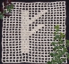 Description: Crocheted fehu rune block in a filet crochet pattern created by me.
